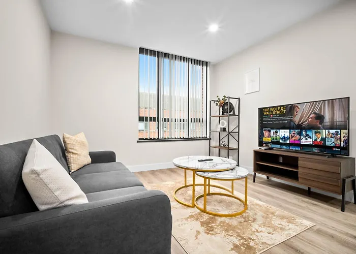 The spacious 2-bedroom Modern Apartment - City Centre - 2 Bedrooms - Wifi - Netflix - Jewellery Quarter 9Ah Birmingham is nestled in the Jewellery district, within 15 minutes' walk of the nine Museum of the Jewellery Quarter.